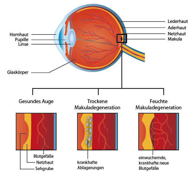 Makuladegeneration, Makula, trockene oder feuchte Makuladegeneration